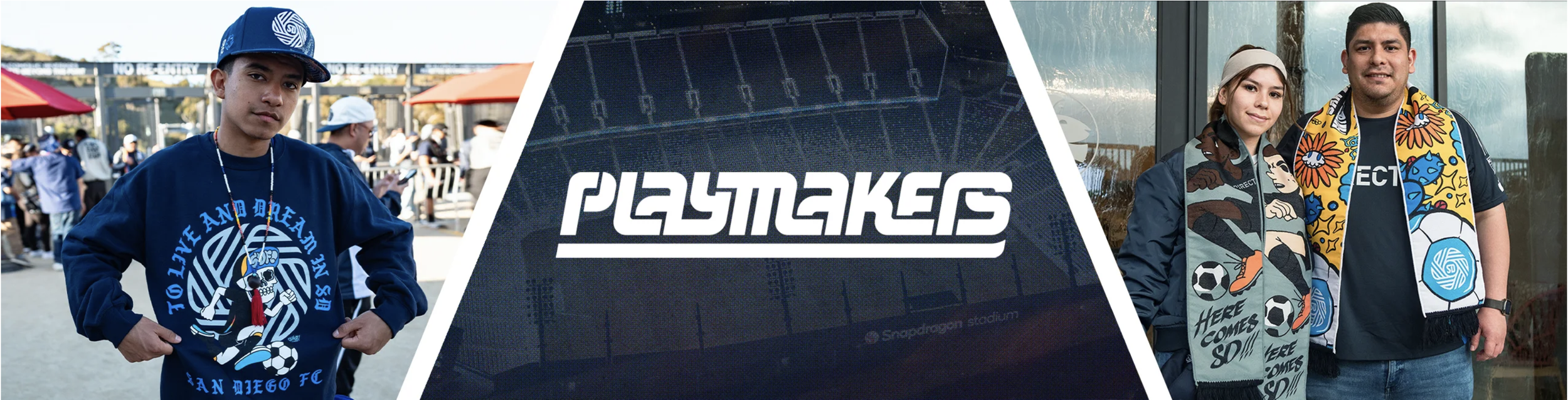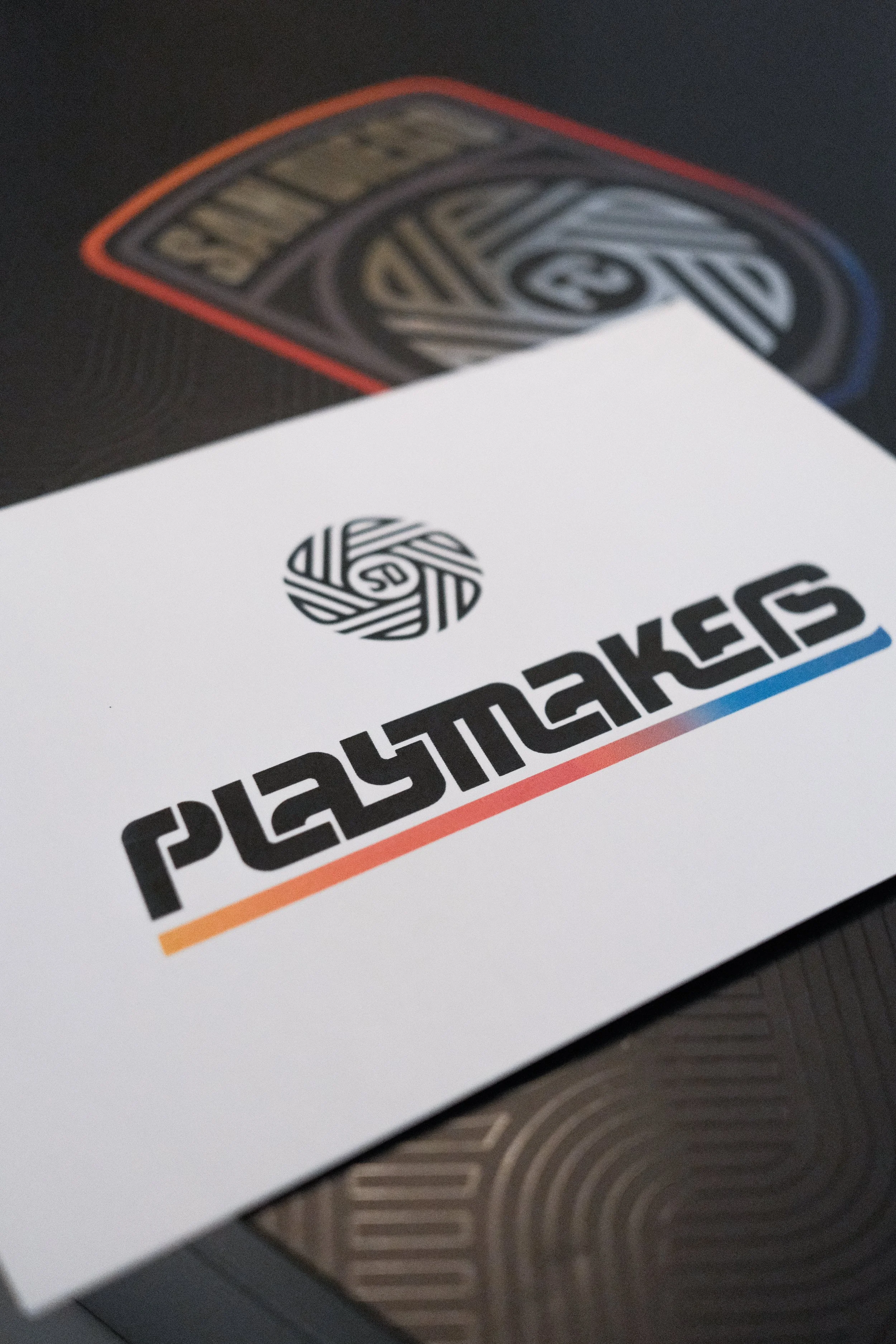 PLAYMAKERS is San Diego FC’s ongoing initiative built to spotlight local creatives and strengthen the cultural fabric around the club. The identity needed to feel at home inside the SDFC brand world while reading as its own creator-forward program. The final wordmark is confident, clean, and merch-ready, designed to live across matchday collaborations, community events, and digital touchpoints without competing with the main club identity.